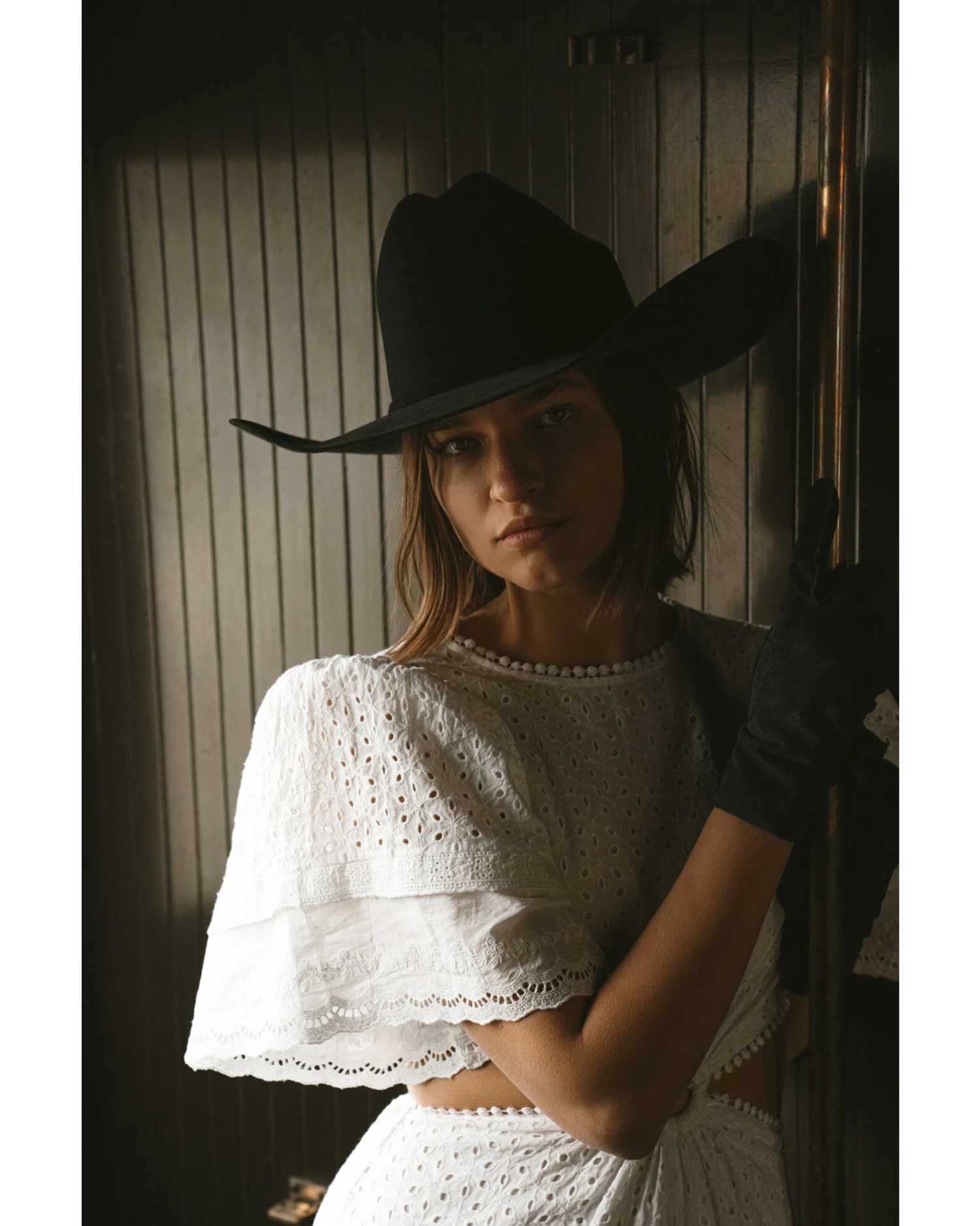 - White with crochet lace eyelet overlay
