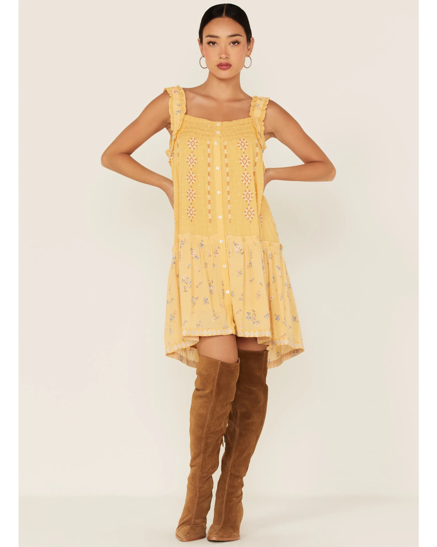 Miss Me Women’s Embroidered Southwestern Floral Print Mini Dress