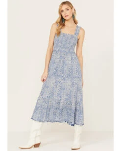 Yura Women’s Western Tiered Sleeveless Midi Dress