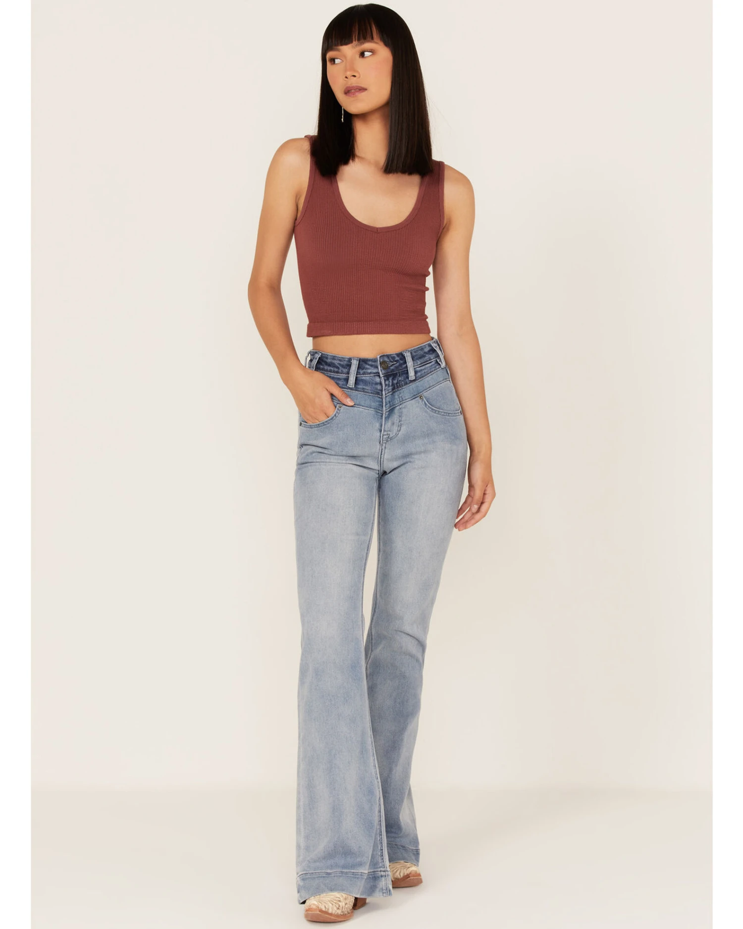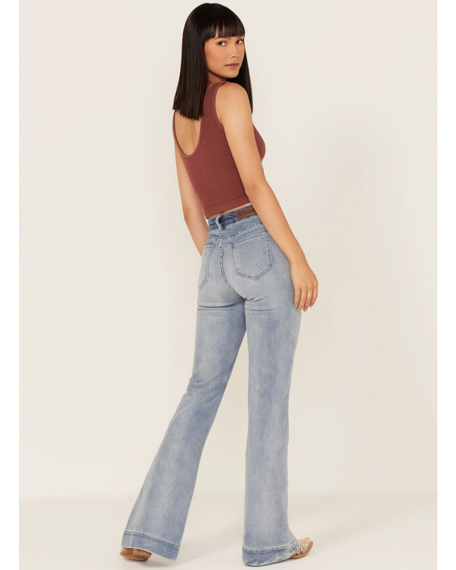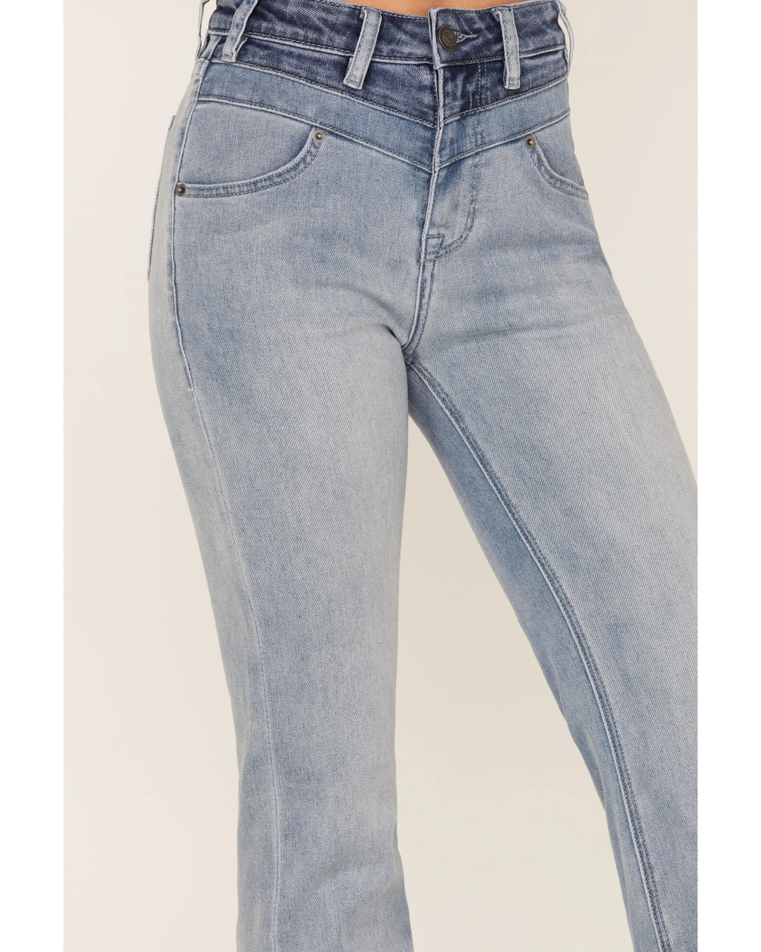 Rock & Roll Denim Women’s Light Wash High Rise Yoke Trouser Flare Jeans