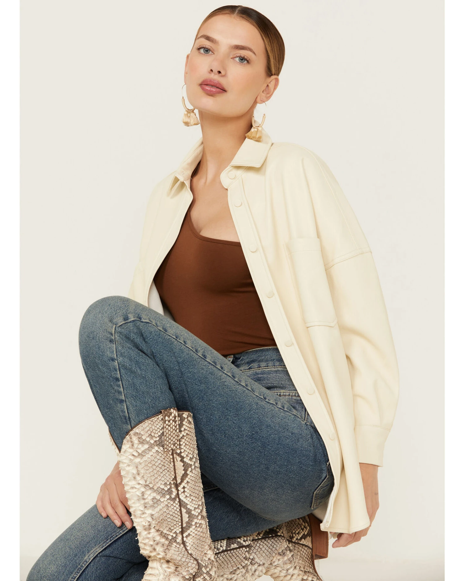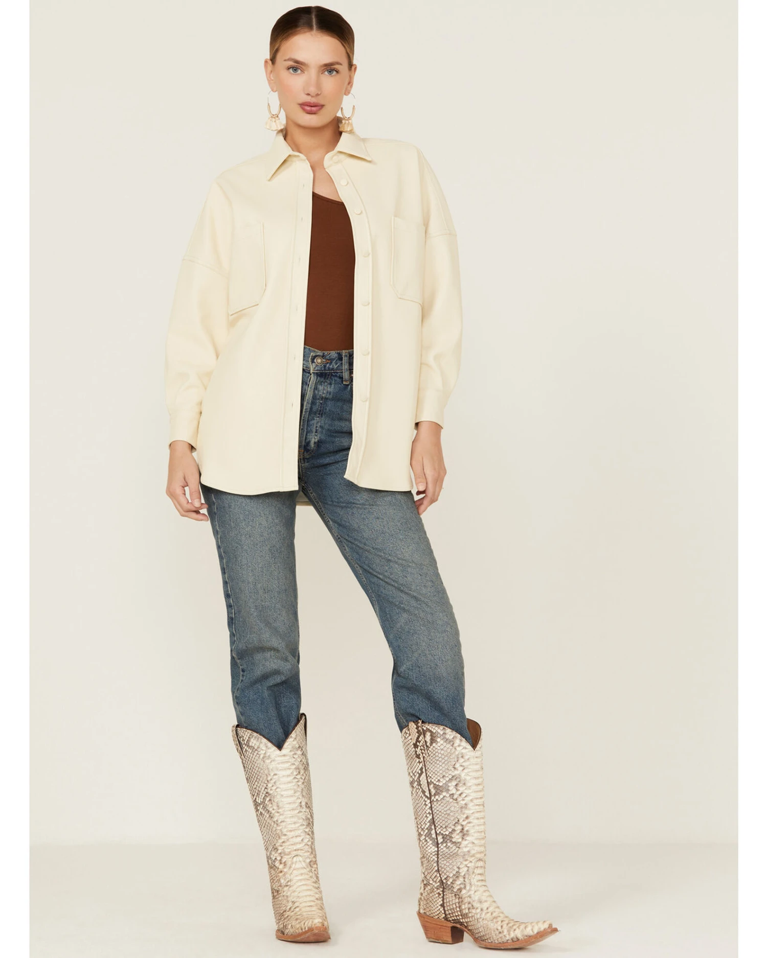 Sadie & Sage Women’s Faux Leather Ecru Shacket